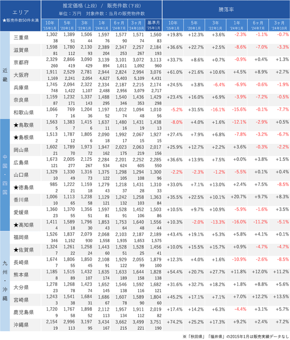 ・騰落率:1位「東京都」+33.5%、2位「熊本県」+27.7%