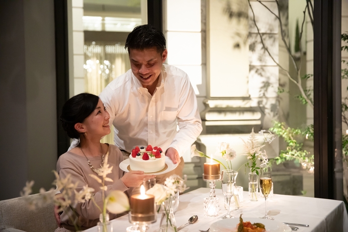 アニバーサリーケーキ(2名様分)、シャンパンボトル 1本