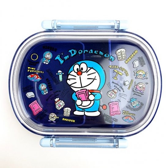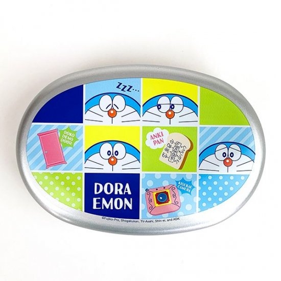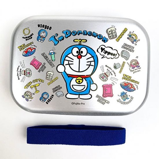 中央のドラえもんをぐるりと囲むひみつ道具たち。とっても賑やかで楽し気なデザインのお弁当箱です。