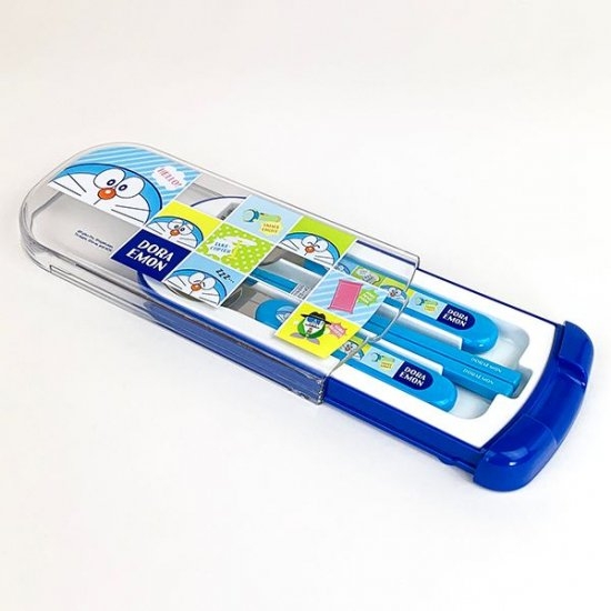 お揃いのお箸セットもご用意しています。お箸とスプーン、フォークがセットになっていて、スライドさせて出し入れするタイプです。