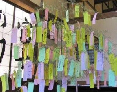 玄関には、笹竹と短冊を設置しますので願い事など、思い思いのメッセージを書き込んで七夕をお楽しみください。
