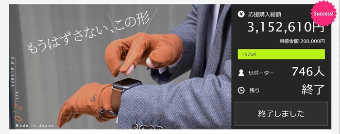 746名のサポーターに応援購入をいただき、目標達成率1576%を記録しました。