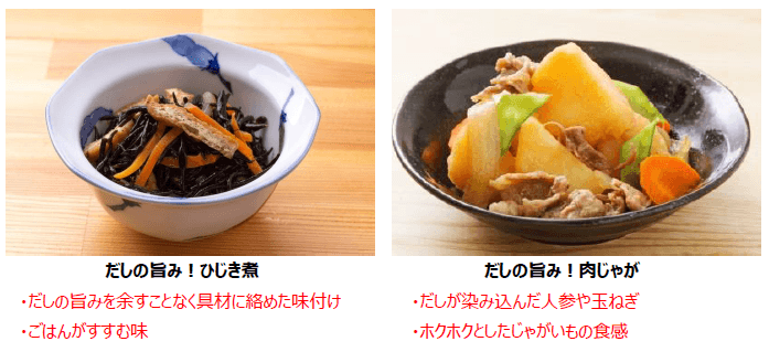 今回リニューアルしたのは「高野豆腐」「竹の子の土佐煮」「ひじき煮」「肉じゃが」の4品。よりおいしい煮物に仕上げるには、“おいしいだし”と“製法”が重要と考え、当社の船橋プロセスセンターにて元和食料理人と管理栄養士の協力のもと、ライフオリジナル配合のだしを抽出し、食材の旨味を際立たせる味付けに仕上げました。
