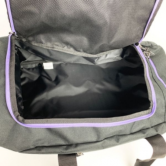 ブラックカラーにパープルのロゴがカッコいいですよね~。ファスナーポケット部分も同じカラーになっていて、アクセントにもなっています。
