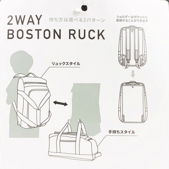 ショルダーのバックルを外してポケットに入れ込めば、リュックの背の部分がボストンの底部分に早変わり♪