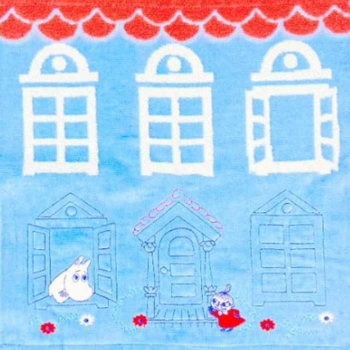 こちらは、家の窓から覗くムーミンと遊びにきたリトルミィが描かれたデザインです。爽やかなブルーに、リトルミィの赤いお洋服が目立っていますね♪