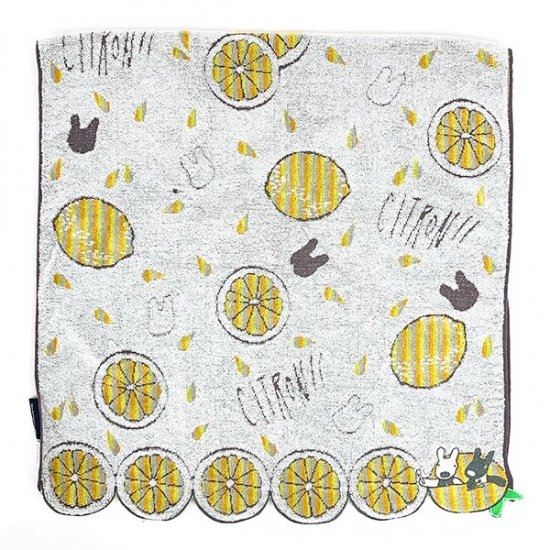 レモン×リサ&ガスパールのデザインで、片側の縁がレモンの輪切りをなぞってカットされています。