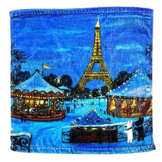 東京タワーとコラボしているデザインもきれいですよ。こちらもウッシュタオルで、肌触りも気持ちいいんです。手をつないでいるリサとガスパールに、ほっこりしますね。