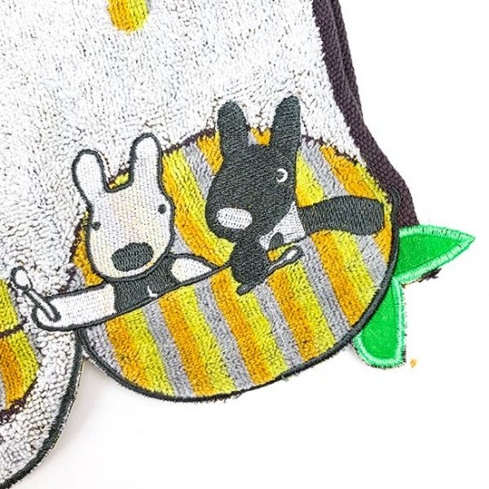 右端には、リサとガスパールが刺繍されています。スプーンを持ってレモンを食べようとしているのでしょうか♪