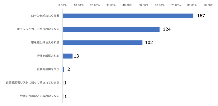 自己破産に関しては、全体としてネガティブなイメージが多い回答結果となりました。