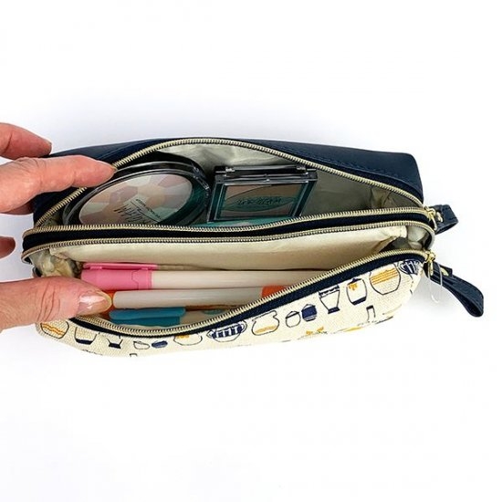2ポケット仕様なので、仕分けができて便利なんです。ペンポーチの他、コスメポーチなどにも使えて便利ですよ。