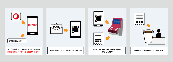 「cyzen」アプリをダウンロードするとローソン マチカフェコーヒーが1杯無料となります。