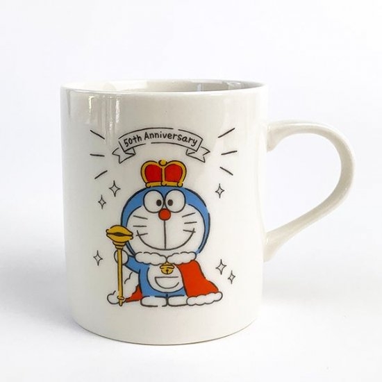こちらは正面を向いたドラえもんマグカップ。王冠とローブ、手にはステッキ。あれ?こんなところにどら焼きが付いてるー!ドラえもんにしかありえないおかしなステッキに、こちらまで笑顔になっちゃいます。