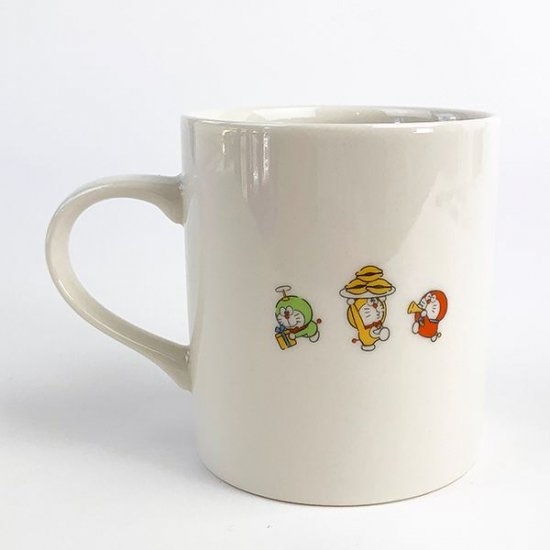 こちらは横向きドラえもんマグ。すました顔で歩くドラえもん。どら焼き好きすぎてステッキに食いついてるようにも見えます♡後ろにはいたずらっ子なミニドラちゃん。何かやらかしてくれそうです。