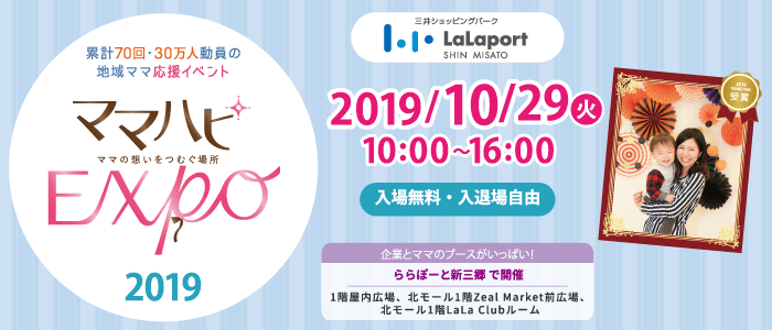 ▼ 10月29日(火)開催「ママハピEXPO@ららぽーと新三郷」