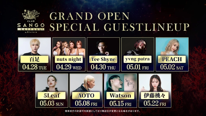 ≪スペシャルゲスト発表≫ 4月28日(火)グランドオープンの札幌・すすきの 新ランドマーク「SANGO SAPPORO」、 GWのオープニング期間を熱く盛り上げる豪華出演者を公開!