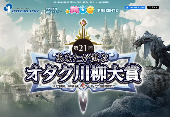 推し活、課金、腐力、古古古参、最前管理、 92歳の東映オタク、こんな大人・・・ 応募総数9,957句より最終選考を通過した20句決定! 「第21回オタク川柳大賞」、投票受付開始