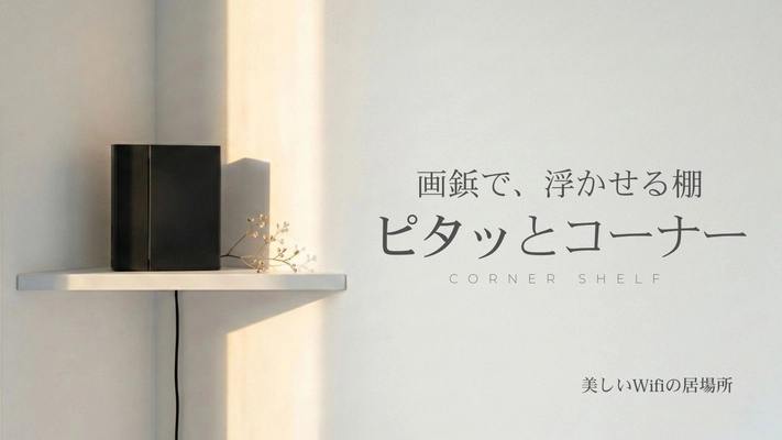 【開始1日で642%突破】賃貸OK、画鋲のみで「デッドスペース」がWi-Fiの特等席に。浮かせるコーナーシェルフ『ピタッとコーナー』がMakuakeで先行販売開始。