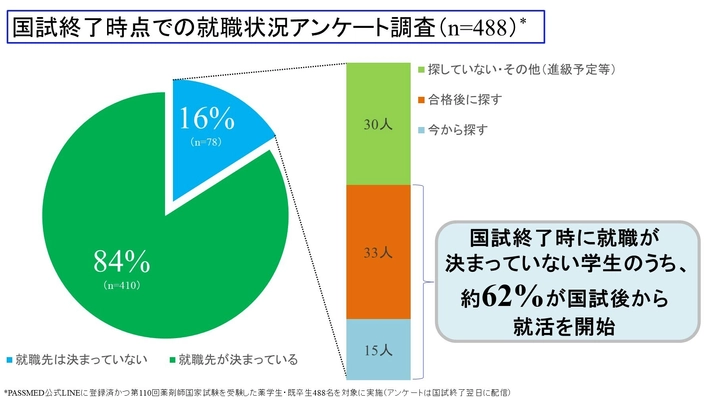 薬剤師国家試験終了時点で「就職未決定」は16%、 うち62%が国試後から就活を開始とのアンケート調査結果を 株式会社PASSMEDが公表