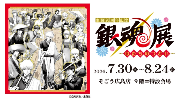 【「生誕20周年記念 銀魂展 ~はたちのつどい~」広島会場】 7月30日(木)より、そごう広島店 9階=特設会場にて開催! チケットは5月16日(土)10時より発売!一部日時指定制での販売