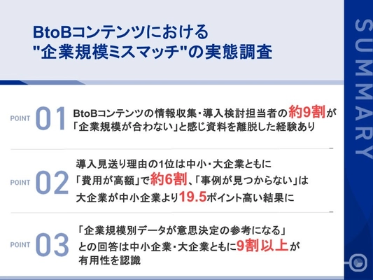 【BtoBコンテンツ"企業規模ミスマッチ"実態調査】 中小・大企業ともに約9割が「規模の合わない資料」を途中離脱、導入見送りにも直結する実態が明らかに