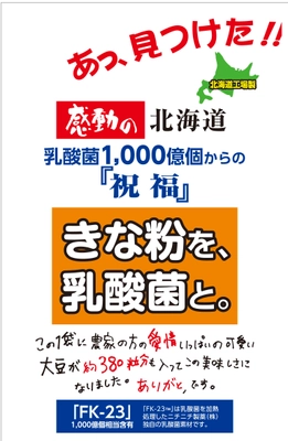 特許取得の乳酸菌『FK-23菌』と 北海道産大豆100%使用のきな粉をブレンドした 「感動の北海道 きな粉を、乳酸菌と。」を発売
