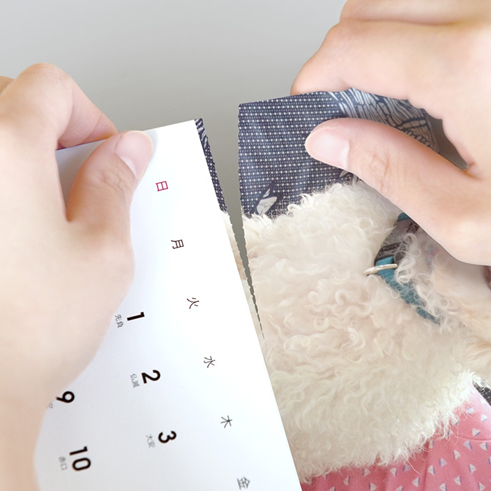 写真とカレンダーが切り離せるミシン目を付けました。写真部分のみアルバムに収納して保管できます。