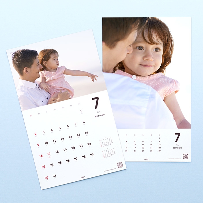 縦横の写真に合わせて選べる2種類のデザイン。縦写真はL版写真の約4倍にあたる大きな写真が入ります。横写真は書き込んで使いやすいようにカレンダーの実用性を重視しました。