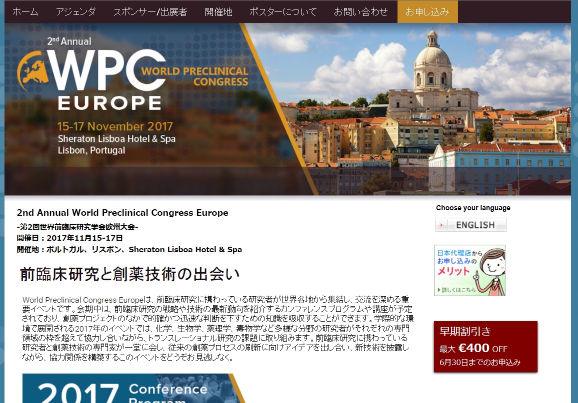 学会:「2nd Annual World Preclinical Congress Europe-第2回世界前臨床研究学会欧州大会」