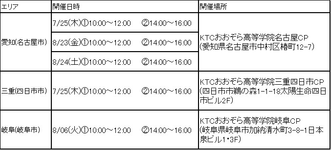 東海3県で7・8月開催