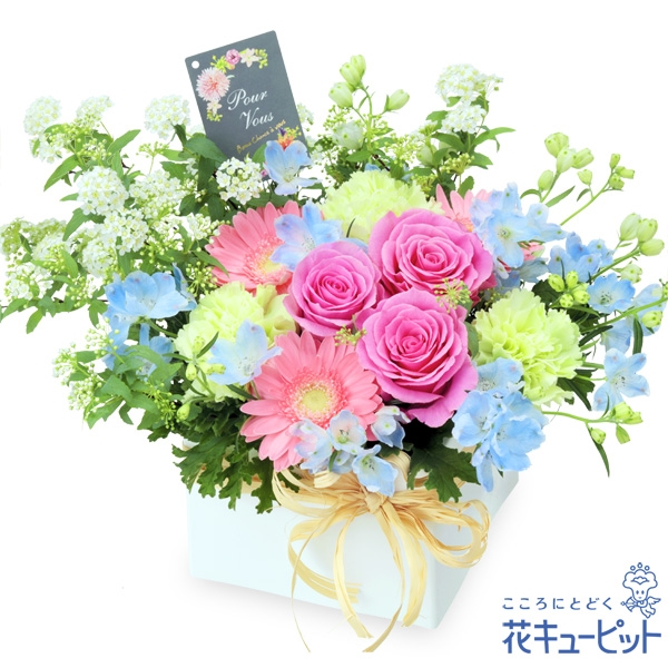 花々が咲き誇る、春の景色を切り取ったかのようなデザイン。どの世代からも人気の高いバラやガーベラをメインに様々なお花をお届けします。受け取った方を優しい気持ちで包んでくれそうです。