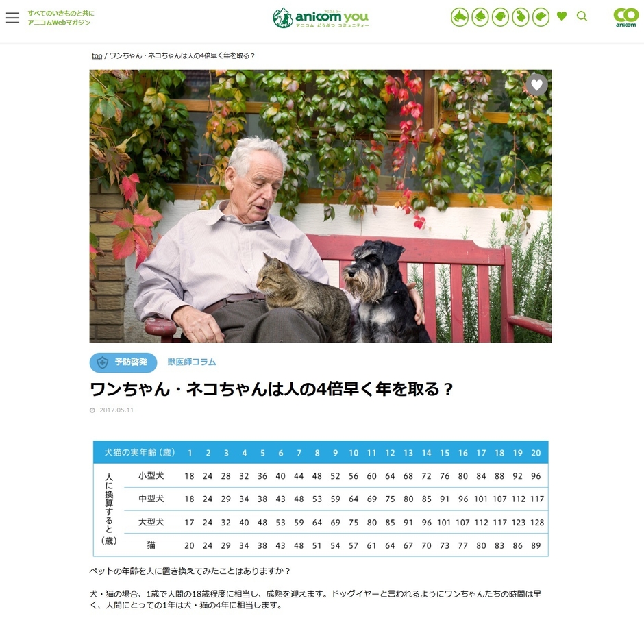 サイト名:anicom you~アニコム どうぶつ コミュニティー:https://mag.anicom-sompo.co.jp/