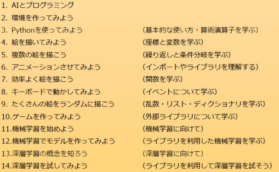 AIを用いて絵を描く・ゲームを作るなどお子様の好奇心を刺激しながら、最終的には機械学習や深層学習などAI技術の中核部分も学ぶカリキュラムで構成されています。