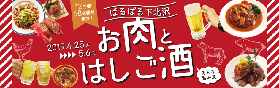 内容 :下北沢の68の参加飲食店のお肉料理とお酒を楽しみながら、
