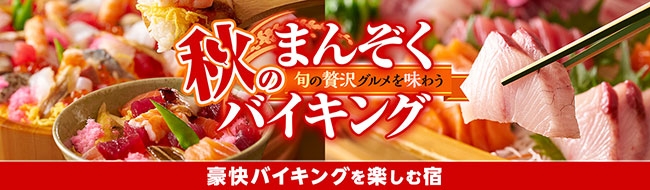 9,000円以下で楽しめる、一泊2食付き温泉旅。地元水揚げ生まぐろ&かに食べ放題、でかネタ寿司を豪快に楽しむ【秋のまんぞくバイキング】、9月1日スタート!