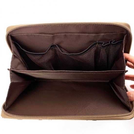 スリムな見た目のケースですが、ファスナーを開けるとこんなにポケットがいっぱい!
