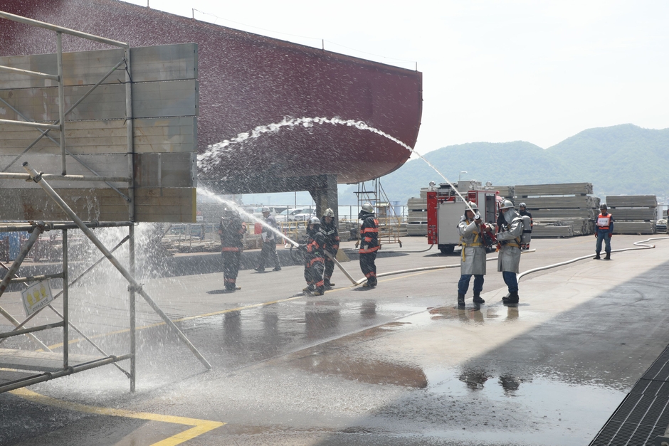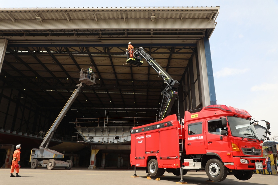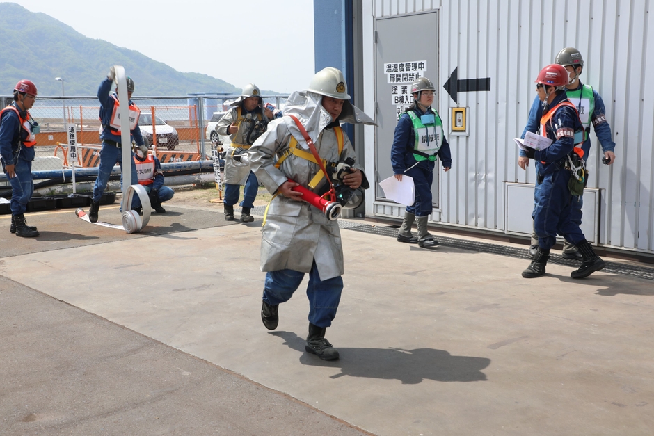 常石造船では2003年から火災への対応、2008年から地震へ対応する防災訓練を毎年実施しており、今後も引き続き工場の安全操業、防災対策、有事の際の迅速・的確な対応力強化に取り組みます。