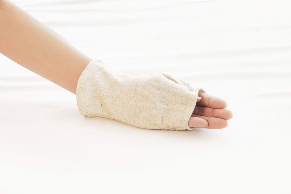 長時間装着しても痛くならないよう、柔らかい生地(麻とコットン)を使用しています。優しく手を覆う手袋タイプで、睡眠中も無理なくティラノの形を維持できます。シンプルなデザインで、男女兼用でお使いいただけます。
