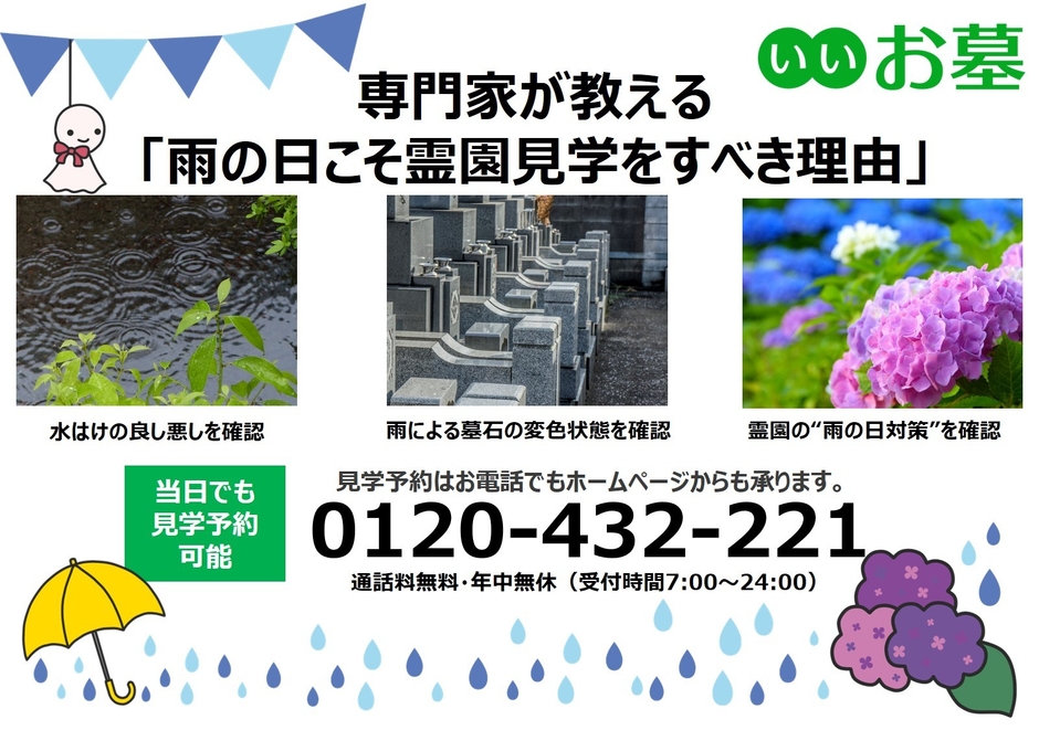 お墓探しで失敗しない秘訣は、雨の日の「霊園見学」。 お墓の専門家が教える理由とは。 「雨の日限定!見学で豪華特典がもらえる霊園特集」開始!