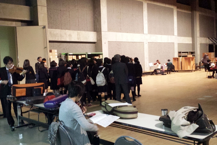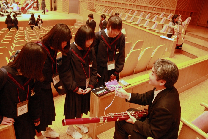 一般財団法人ツネイシみらい財団(広島県福山市)は、音楽文化の次の担い手の育成を目的に、2015年2月21日(土)福山市内の中学校6校、高校2校の主に吹奏楽部に所属する生徒94人をツネイシみらい財団主催「広島交響楽団リハーサル・バックステージツアー」に招待しました。