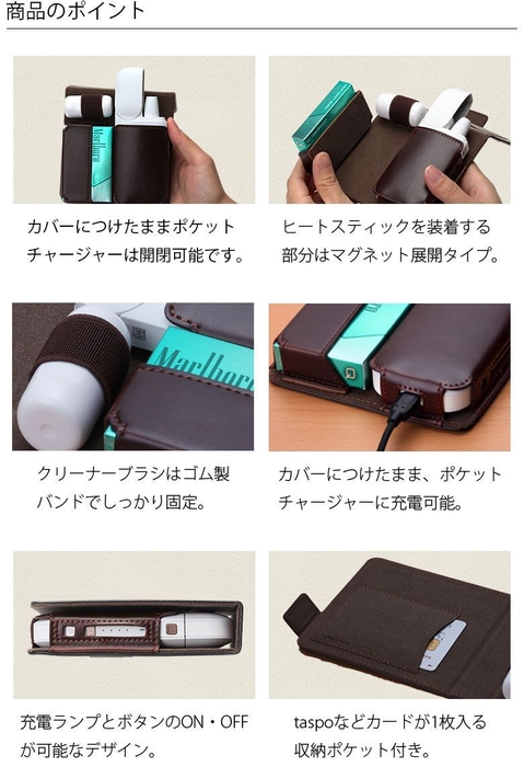 ・ヒートスティック収納部分はマグネット展開タイプで、装着したままでもヒートスティックが取り出しやすくなっています。
