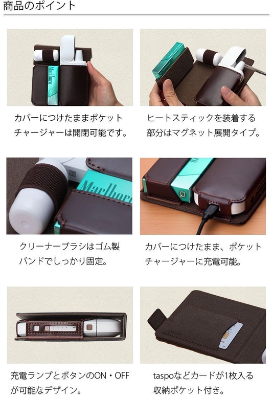 ・IQOSに必要なものが全て入る、収納スペースが美しく設計された手帳型のカバー