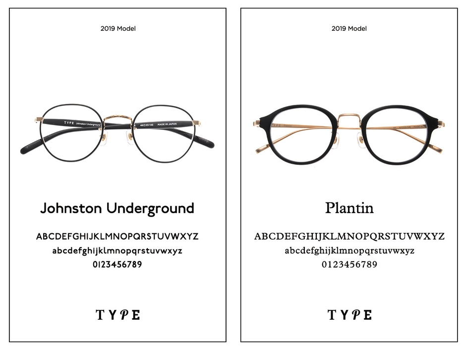 オーマイグラス株式会社(本社:東京都港区)は、書体(typeface)を選ぶように眼鏡のデザインを選ぶ、というコンセプトのアイウェアブランドTYPE(タイプ)に、この度、新たに「Johnston Underground(ジョンストン アンダーグラウンド)」「Plantin(プランタン)」の2モデルが登場することをお知らせします。
