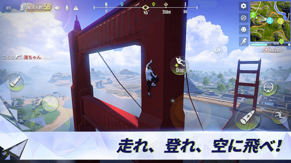 他の一般的なバトルロワイヤルゲームと同様に、レイダーたちは空から6km四方のマップに飛び降りて、資源を集めながら生存を目指します。このゲームでは、垂直な面はどこでも登ることができます。登った後は高所から滑空できます。アイテム(たとえば、クライミング速度を上げる戦術グローブ)を見つけて、探索の効率を上げることもできます。