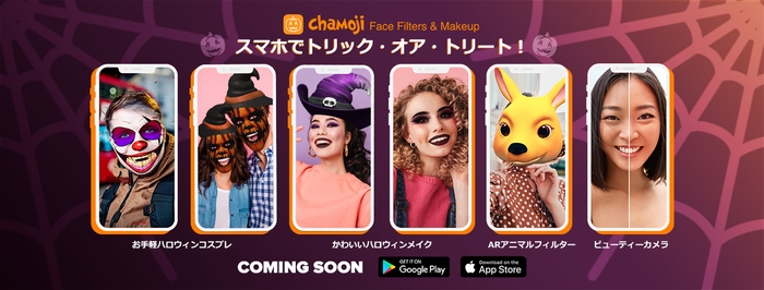 自撮りカメラアプリ『チャモジ』 東京ゲームショウ2019にてリリース! スマホでトリック・オア・トリート! ハロウィンフィルター&メイクアップ