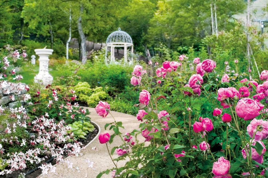 緑の芝生、宿根草のボーダー、植物達で埋め尽くされたロックガーデンと壁で囲まれたウォールドガーデンなど、数多くの賞を受賞したイギリス出身のガーデンデザイナー、マーク・チャップマン氏のデザインによる美しい庭園をお楽しみいただけます。