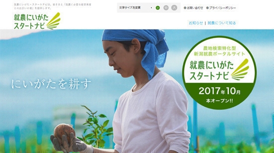 農業ベンチャーの株式会社アグリメディア(本社:東京都新宿区、代表取締役:諸藤 貴志)は、新潟での就職・就農を検討されている方へ役立つ情報を紹介するサイト「就農にいがた・スタートナビ」を2017年10月4日に本格オープンしました。
