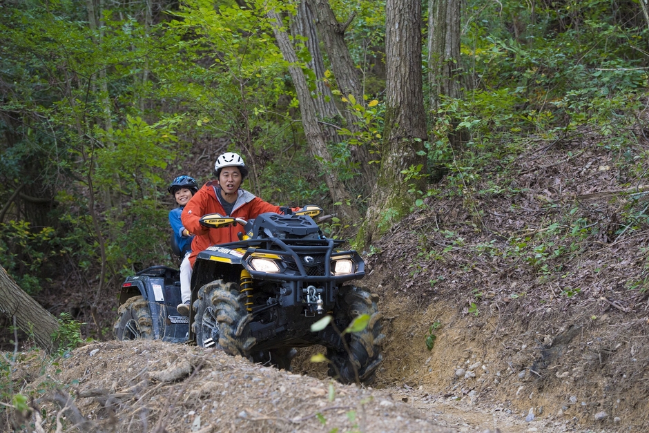 起伏や傾斜の激しいオフロードを、バギーで大疾走!むき出しの身体に直に響くスリル、巻き上がる土埃と土煙、五感に響く興奮と爽快感に本能が揺さぶられます。