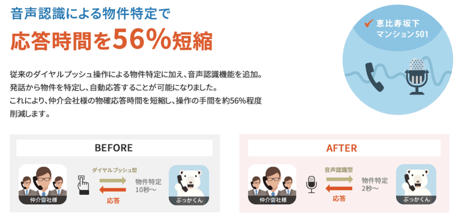 不動産賃貸管理会社向け空室確認サービスに音声UIの採用で、さらに自動応答時間を最大56%削減