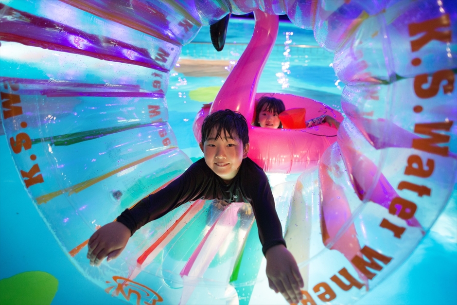 ウォーターホイールやフラミンゴフロート、シェルフロートなどの無料レンタルに加えて、リゾート感あふれるのプールサイドバーも登場!毎週土曜日はDJがプレイするアニメ・レゲエをBGMに煌めく照明が幻想的なプールで日焼けを気にせず遊べます。プールサイドデッキでは昔なつかしの縁日や阿波踊りライブも開催され、家族や三世代ファミリーで楽しめます。